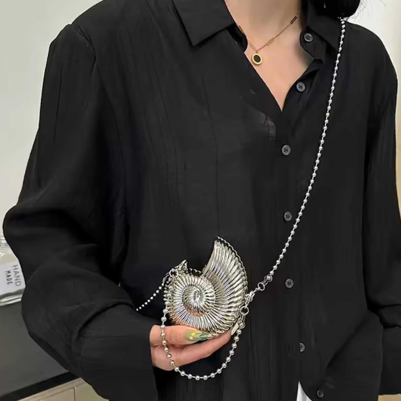 貝型チェーンバッグ-シルバー Shell chain bag