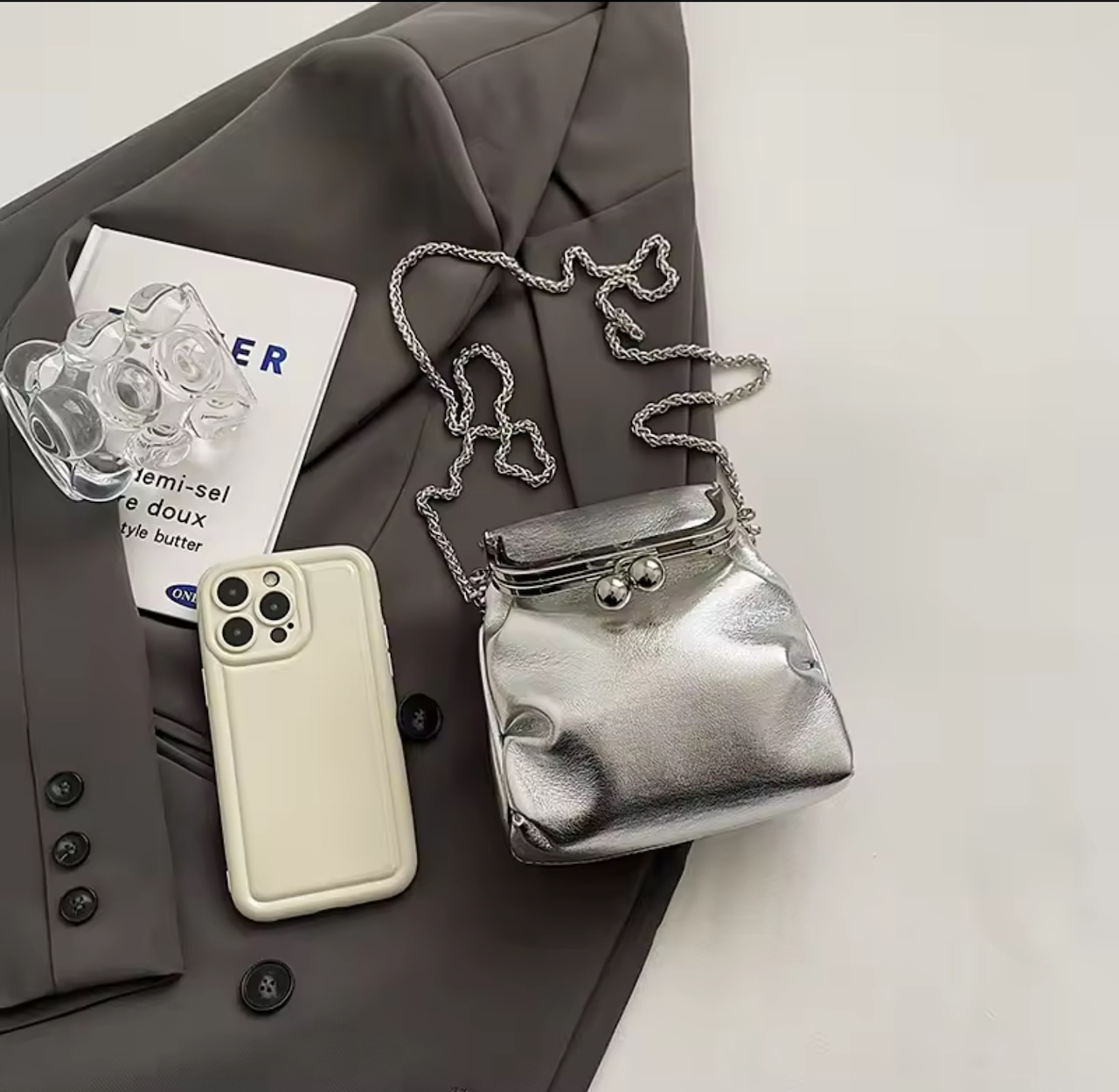 チェーンショルダー/シルバーミニバッグ Chain shoulder/silver mini bag