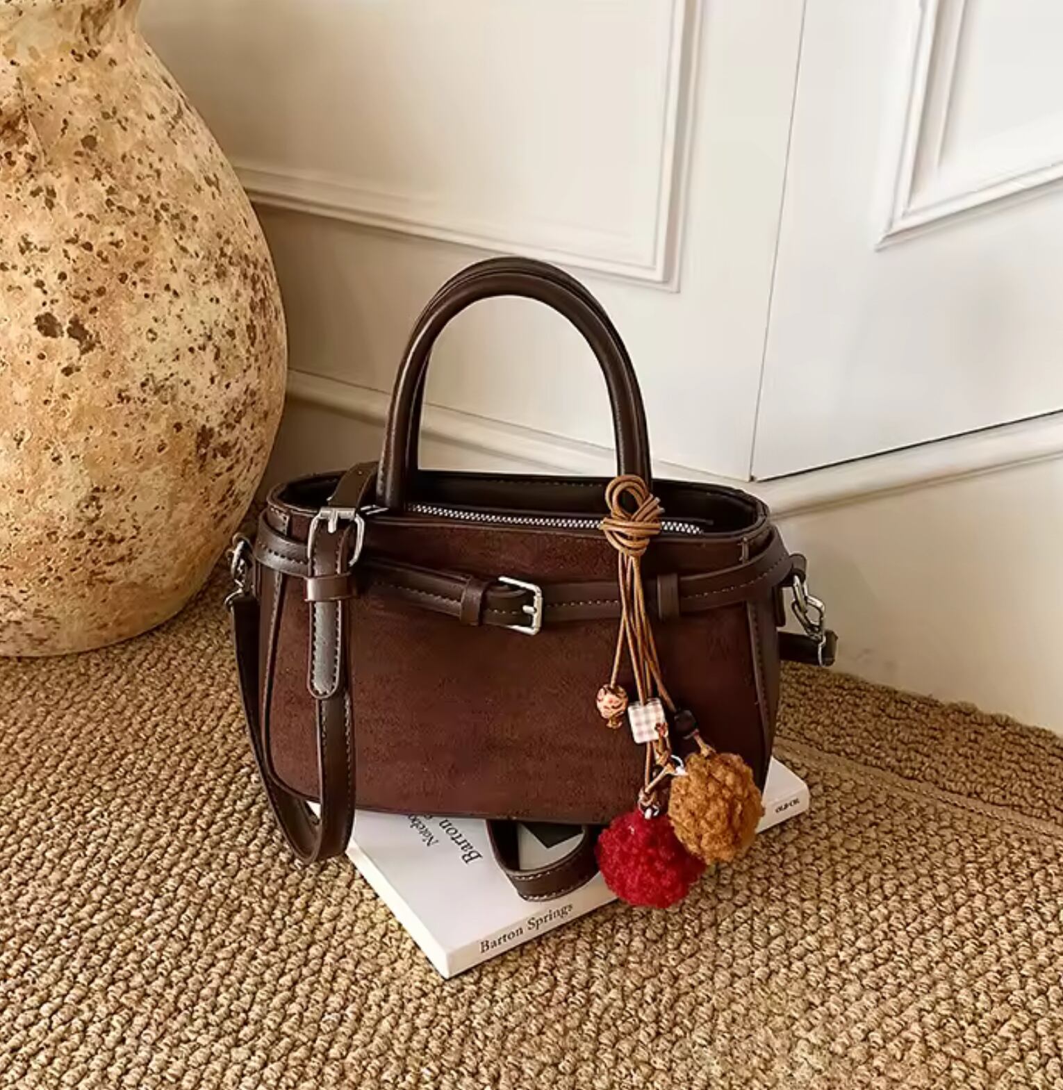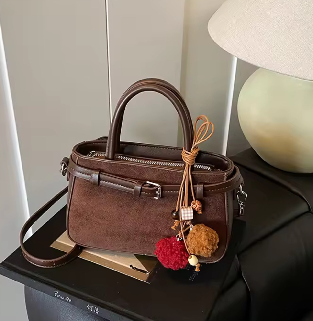 スエードダークブラウンミニバッグ Suede dark brown mini bag