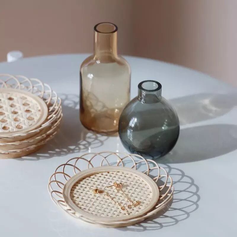 Bamboo coaster ラタン編みコースター ブラウン色 格子 韓国雑貨 インテリア