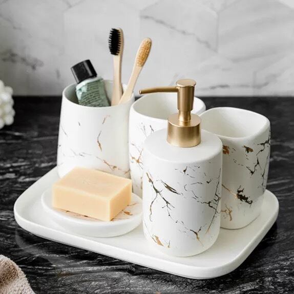 Soap dispenser&cup 2色box ソープディスペンサー カップ ボトル 大理石風