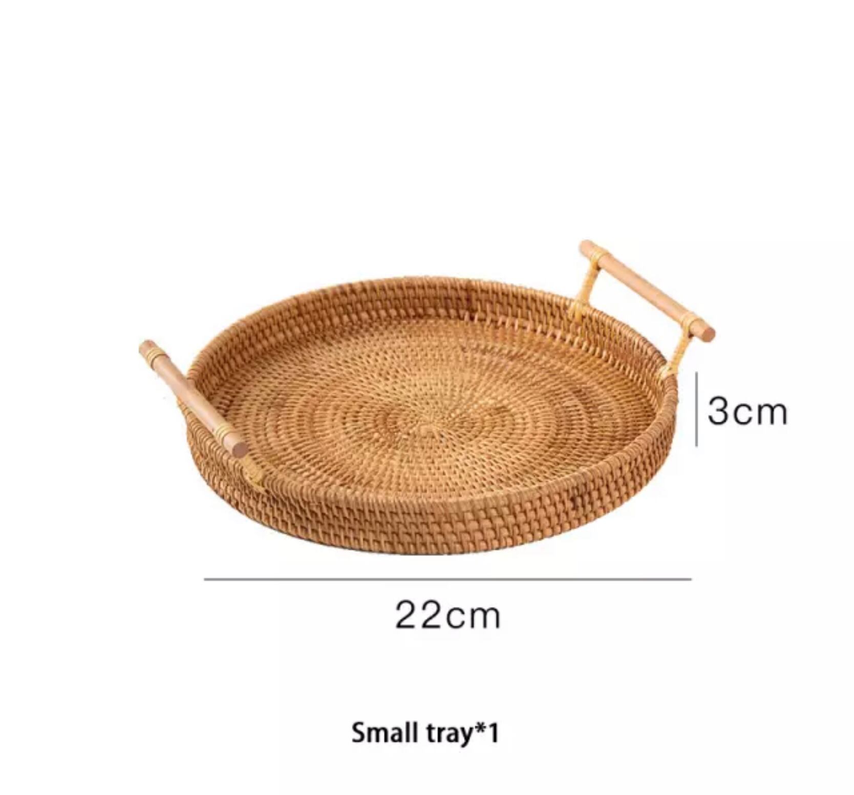 Rattan tray 2サイズ ラタン トレイ 収納 茶 丸 ラウンド 藤 編み サークル レトロ 韓国 雑貨