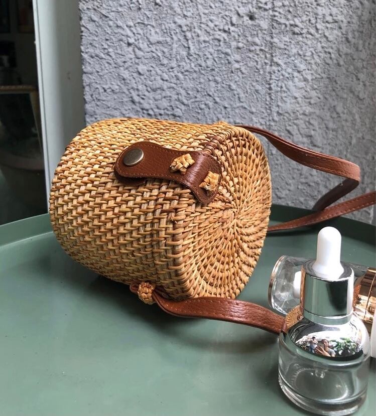 Wicker basket カゴ バッグ 藤 プール ショルダー 鞄 茶 編み レトロ 韓国 雑貨