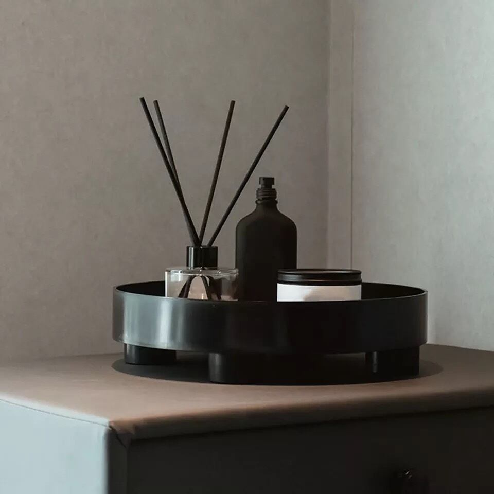 Round tray 3色 ラウンド トレイ 収納 ホワイト ブラック グレー 丸 プラスチック オーク木材 雑貨