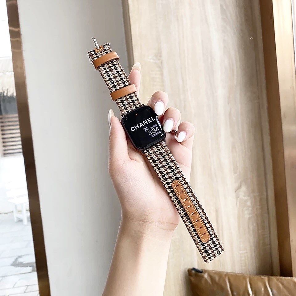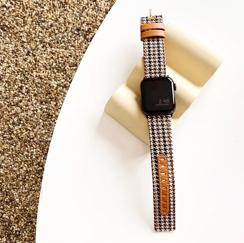 Apple watch band 40,44mm アップルウォッチバンド ストラップ ベージュ ブラック チェック 布 合皮