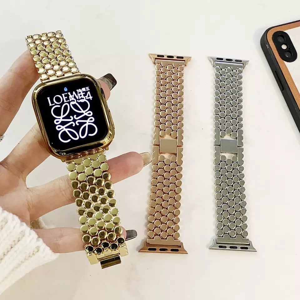 Apple watch band 38,40,42,44mm 4色 ケース付き アップルウォッチバンド ストラップ キラキラ ストーン ステンレス