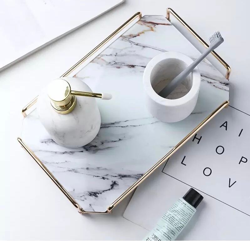 Marble tray 3色 大理石風 マーブル トレイ トレー 長方形 収納 ピンク ホワイト グリーン 雑貨