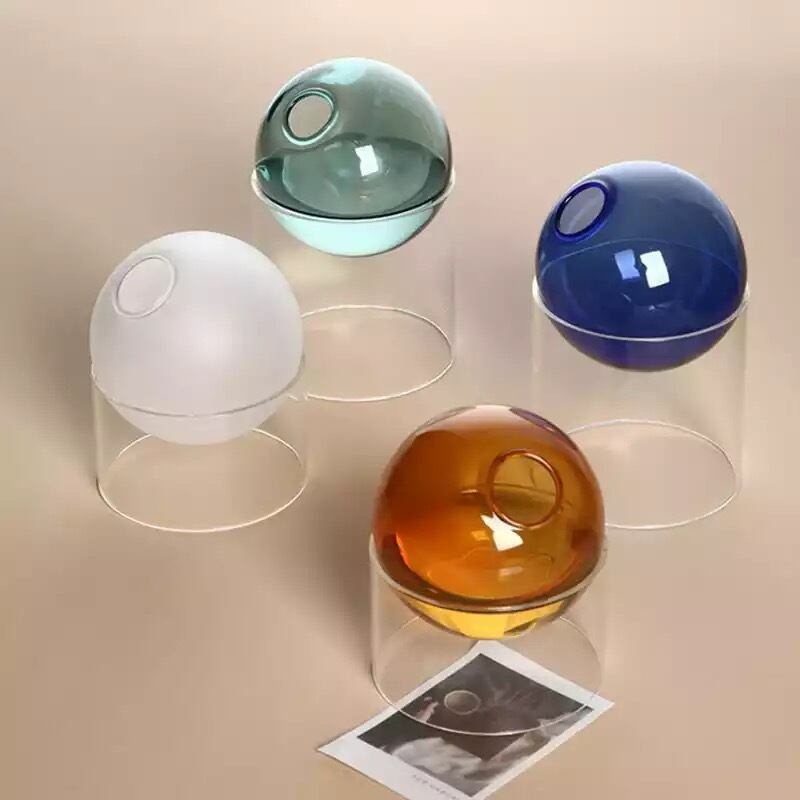 Round flower vase 4種 クリア ガラス フラワーベース 丸花瓶 一輪挿し 雑貨 海外インテリア オブジェ シンプル 小物 北欧デザイン ドライ フラワーアレンジメント リビング