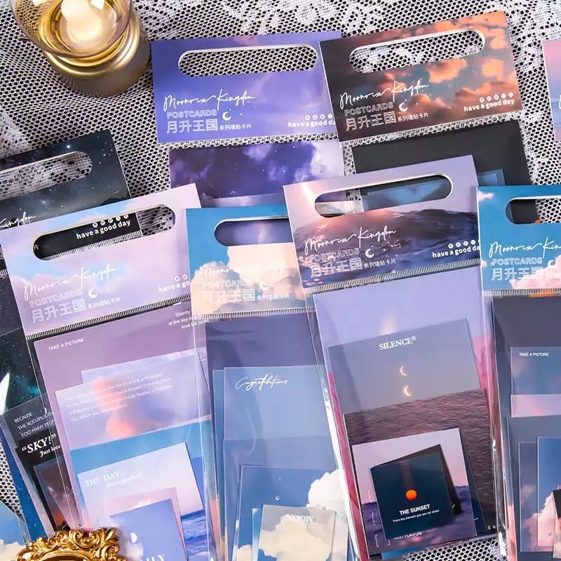 Memo 5種 50枚入り エモい メモ帳ボックス 文房具 文具 かわいい ポストカード 風景 アート 空 月 海