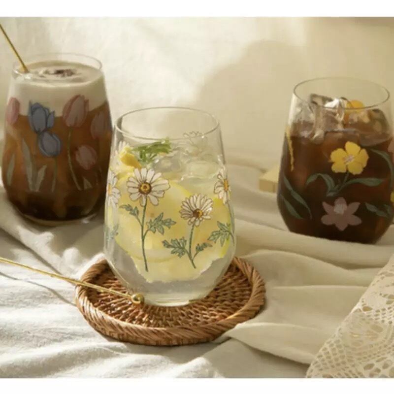 Flower glass 3種 耐熱 クリスタル 花柄グラス コップ インテリア 韓国 おうちカフェ