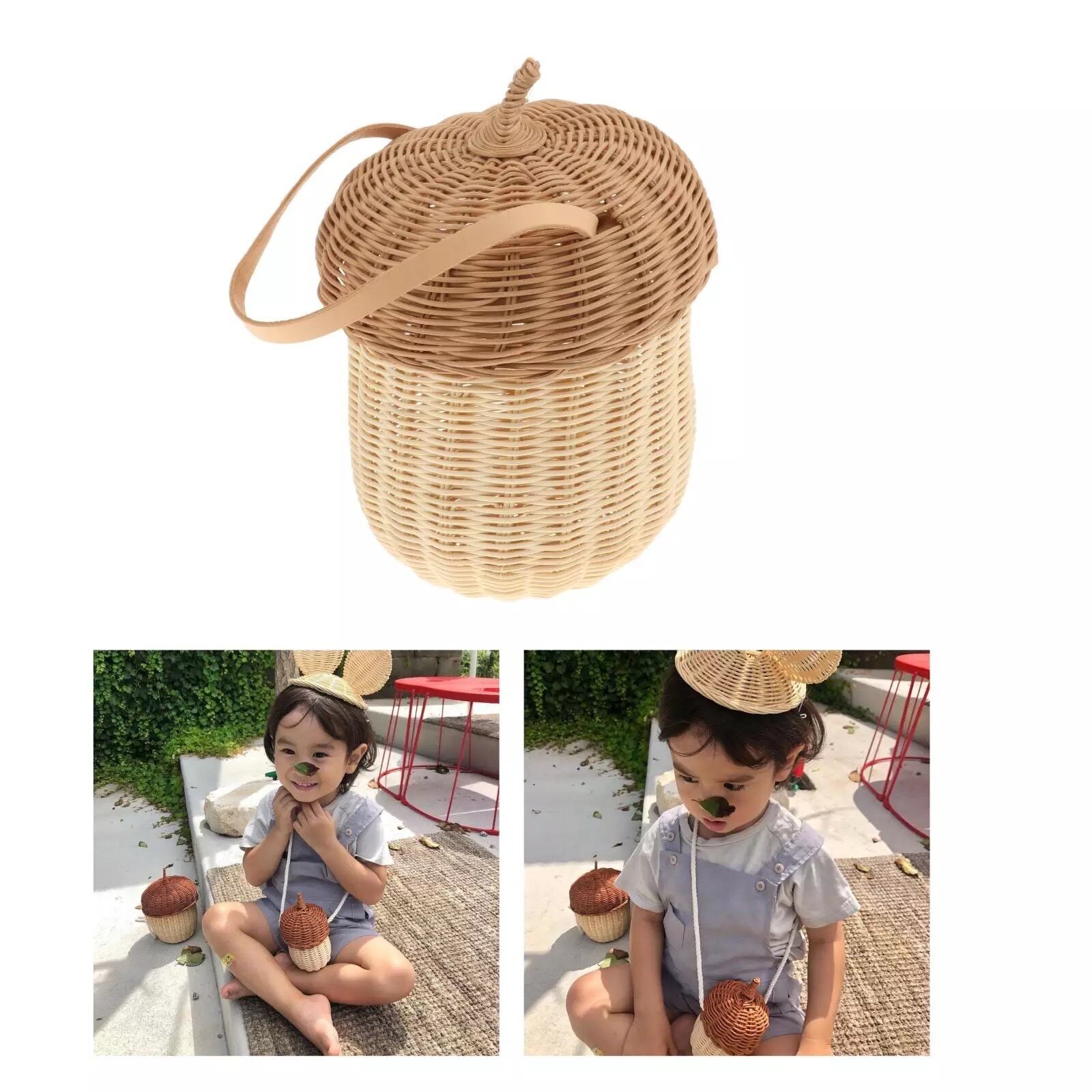 Rattan basket S ラタン どんぐり型 カゴバッグ バスケット 藤編み 収納 茶 レトロ 韓国 雑貨