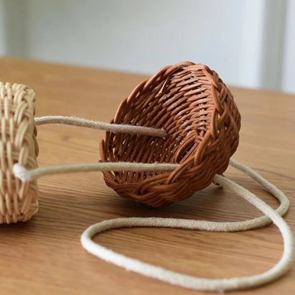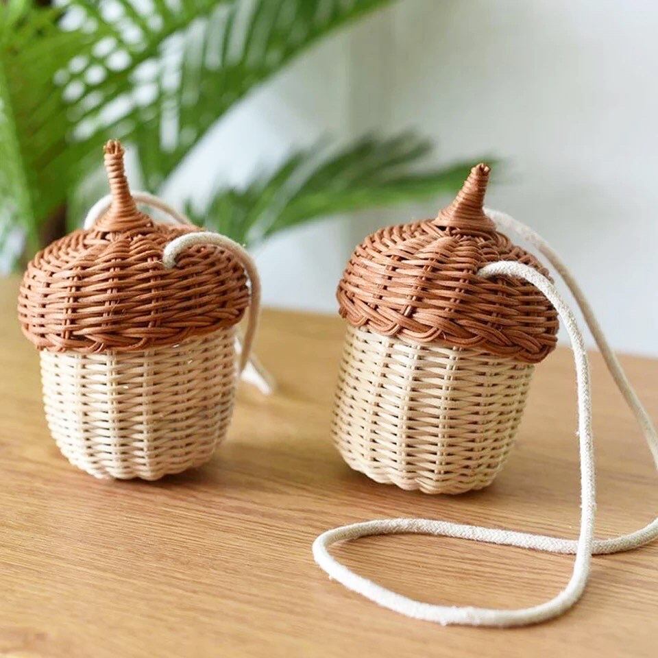 Rattan basket L ラタン どんぐり型 カゴバッグ バスケット 藤編み 収納 茶 レトロ 韓国 雑貨
