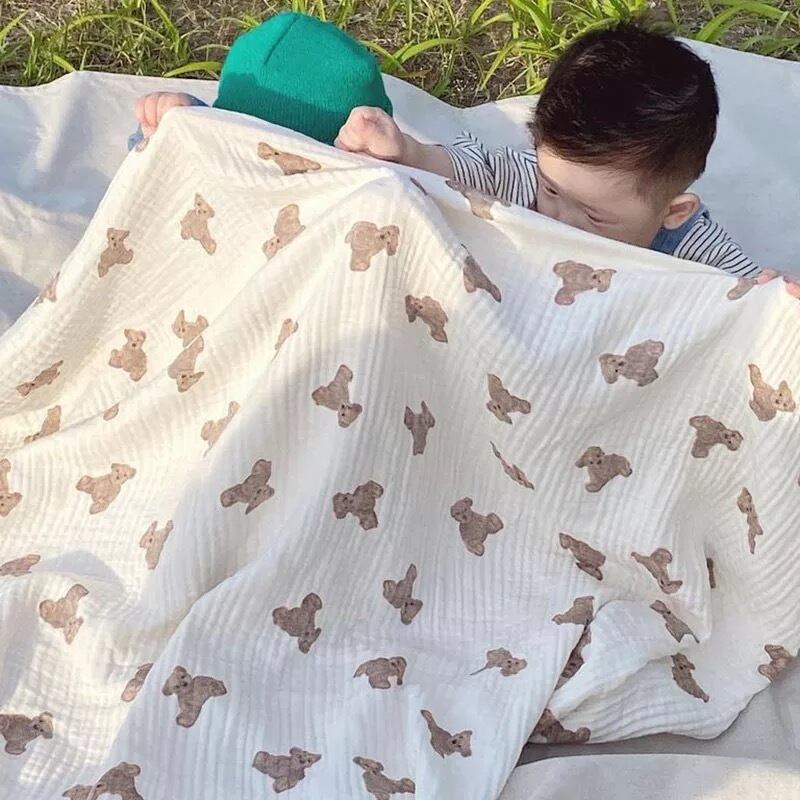 Bear blanket 2サイズ くまちゃん柄ブランケット テーブルクロス カーテン キッチン ピクニック クロス レトロ ヴィンテージ