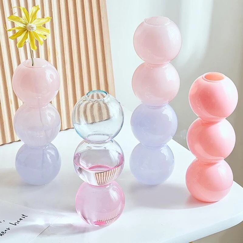 Bonbon flower vase 3段4段 4種 グラデーション キャンドルホルダー バブルフラワーベース 水玉 グラス 北欧デザイン 花瓶 ガラス