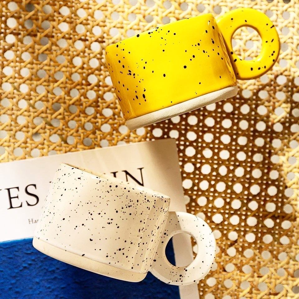 Dot mug 4色 コーヒーマグカップ セラミック レトロ コップ お皿 紅茶 ガラス おうちカフェ