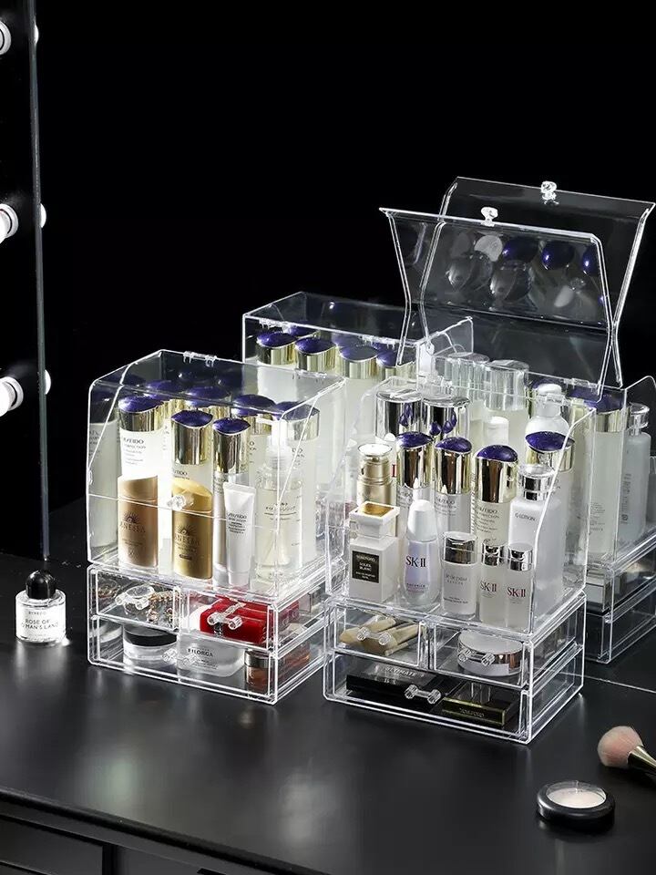 Cosme box 2種 クリア ブラック メイク ボックス 防水 防塵 コスメ アクセサリー ケース 化粧 収納 美容 軽量 アクリル