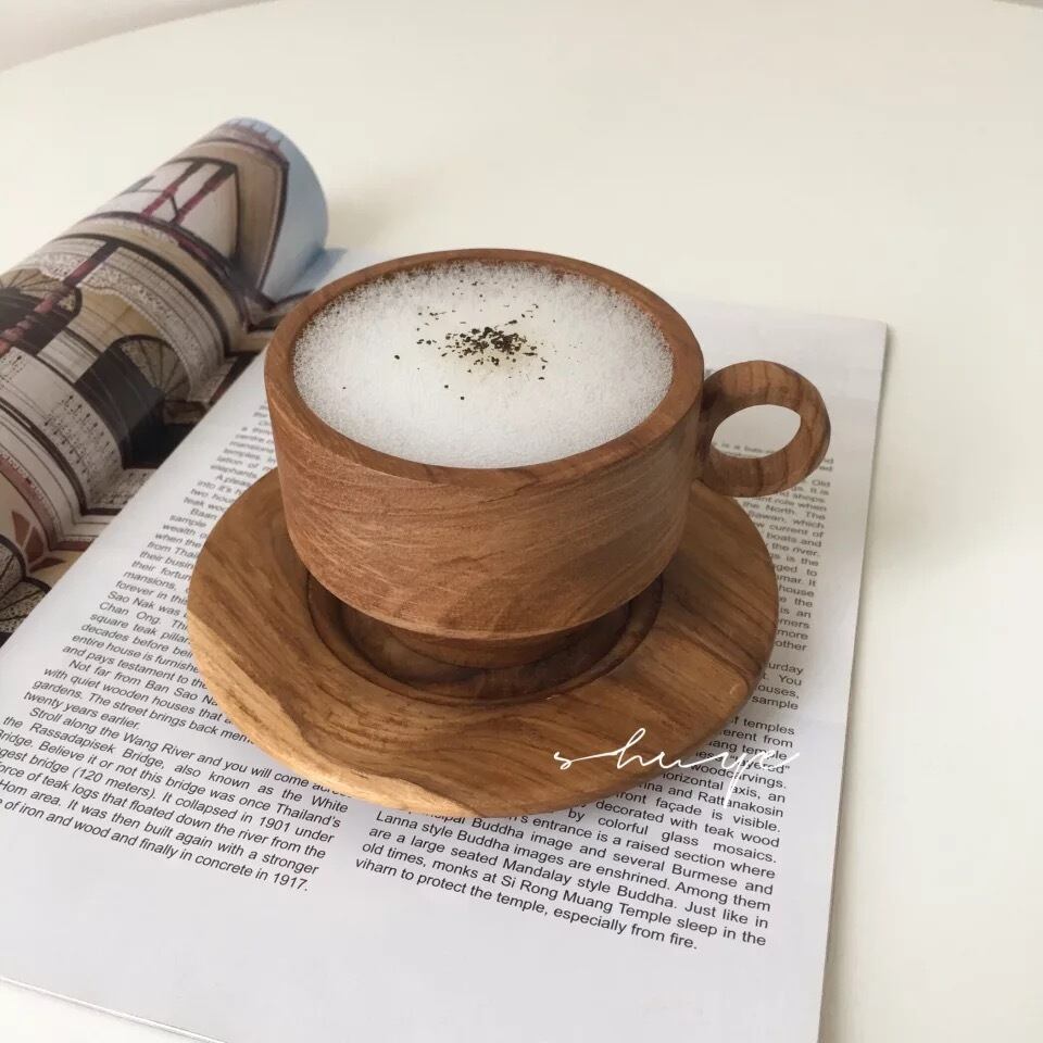 Wood mug ウッドコーヒーマグカップ ソーサーセット 木製 レトロ コップ お皿 紅茶 おうちカフェ