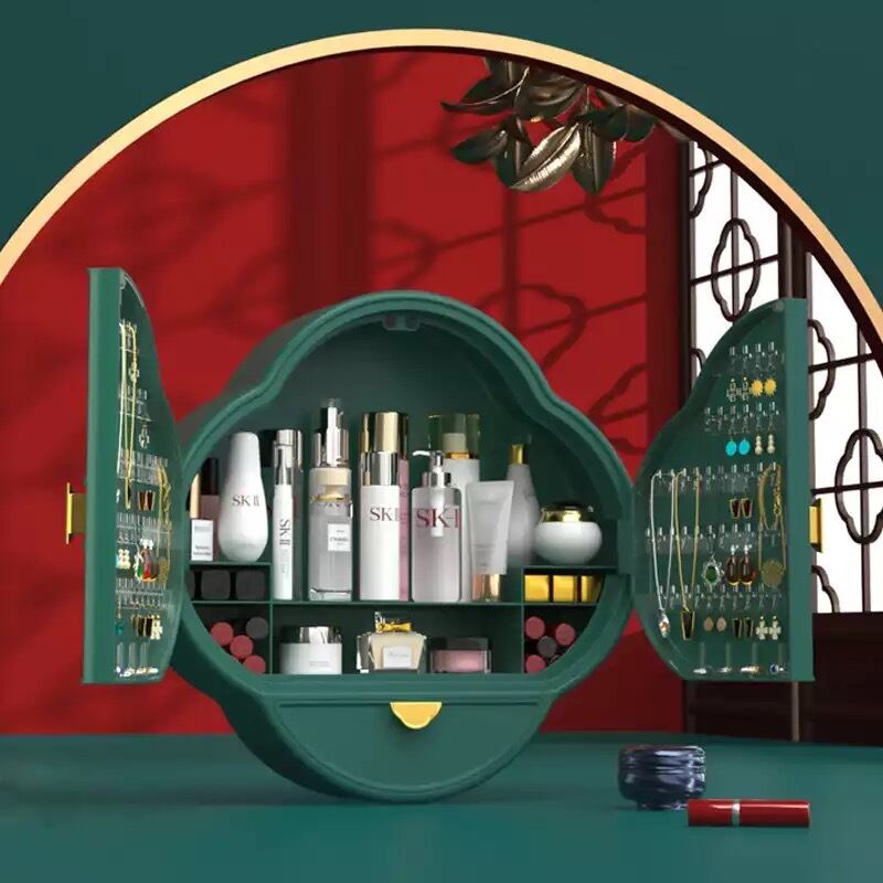 Accessory box 2色 壁掛けメイク ボックス グリーン ピンク コスメ アクセサリー ケース 化粧品 収納 防塵 引き出し 美容 大容量 軽量 グリーン ホワイト
