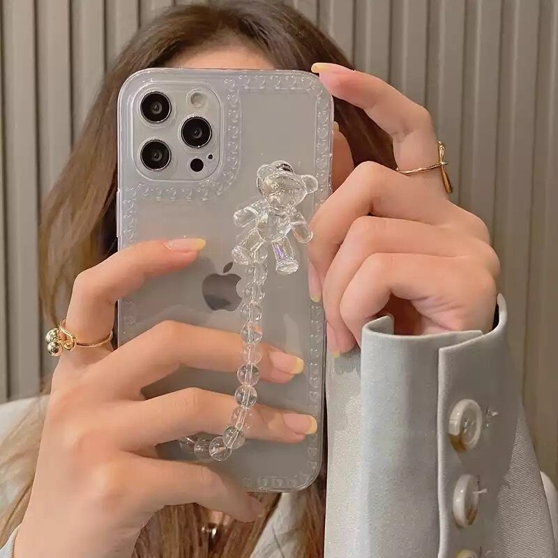 Bear chain iPhone case 15サイズ くまちゃんストラップ アイフォンケース スマホケース カバー iPhone8 8Plus iPhoneX XR XS XSMax iPhone11 11ProMax 11Pro iPhone12 12ProMax 12Pro