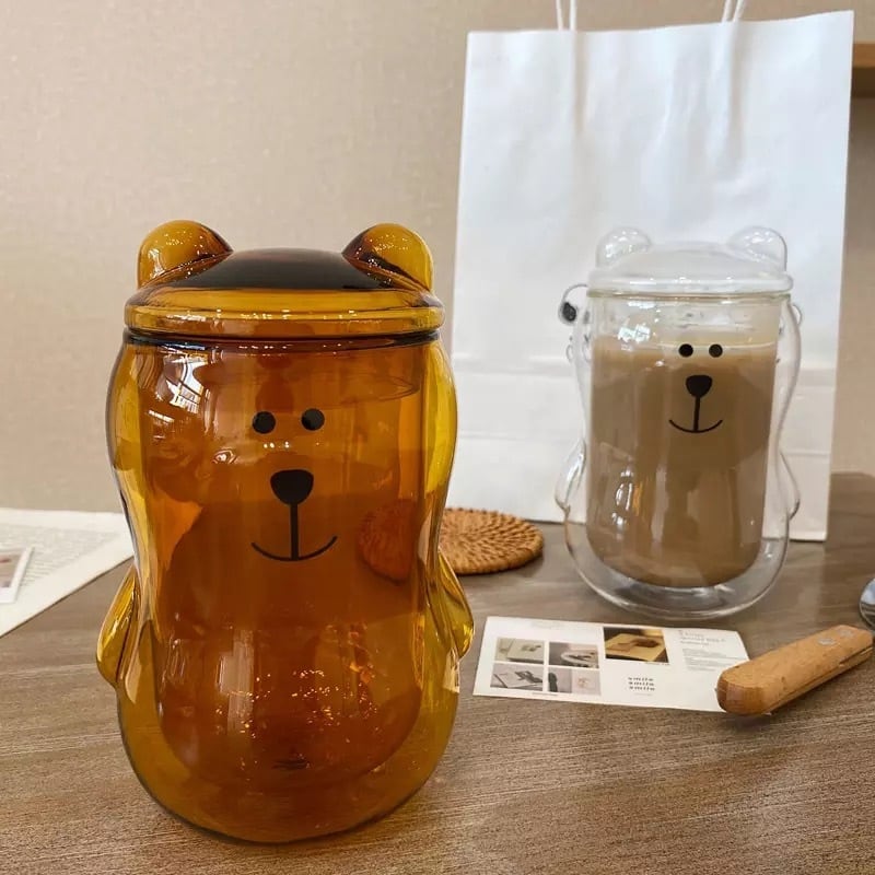 Bear double wall glass 2色 くまちゃんダブルウォール クリスタルグラス コップ インテリア 韓国 おうちカフェ