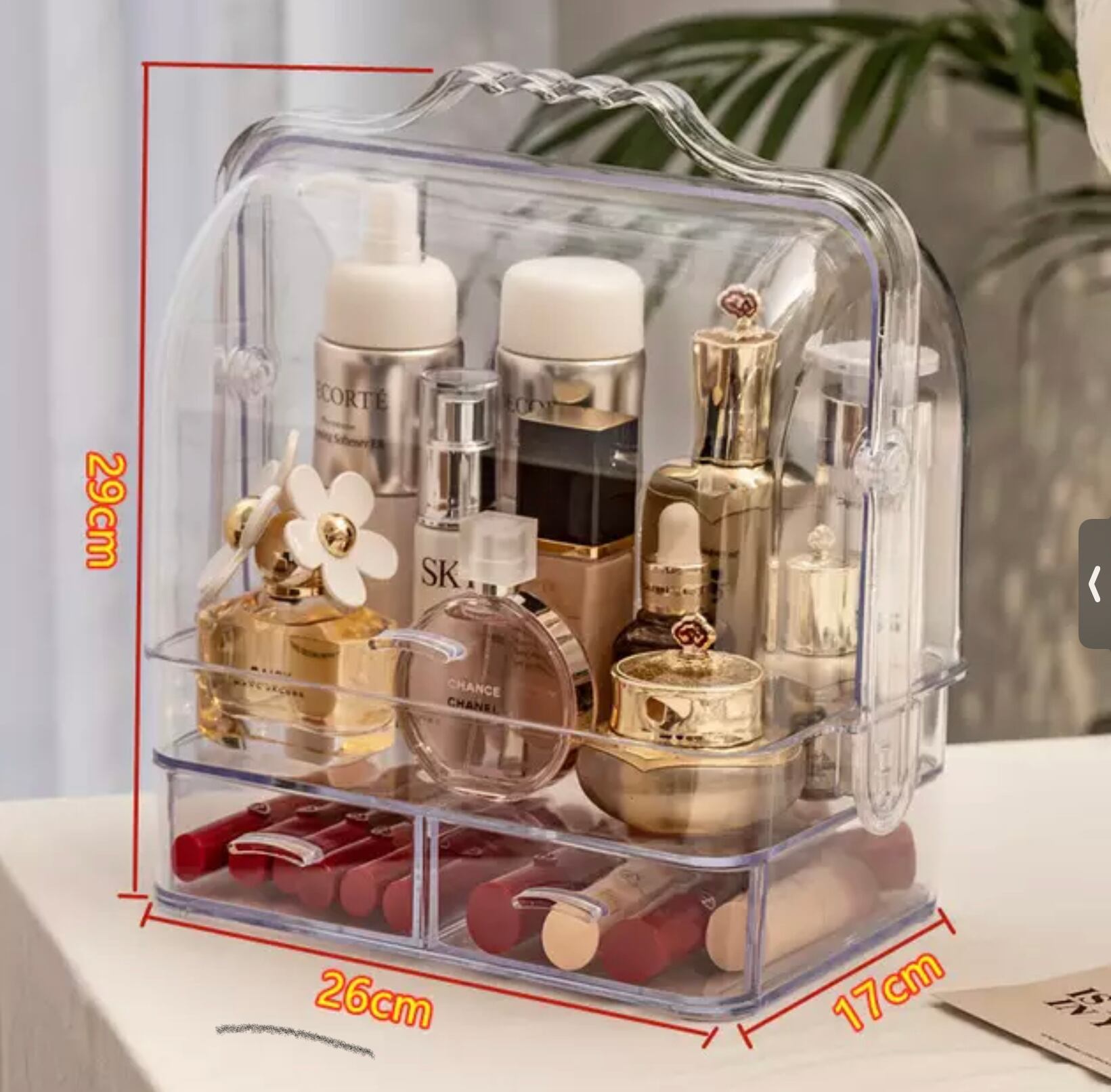 Makeup box 2種 Sサイズ クリア メイク ボックス コスメ アクセサリー ケース 化粧品 収納 防塵 引き出し 美容 大容量 軽量 グリーン ホワイト イエロー