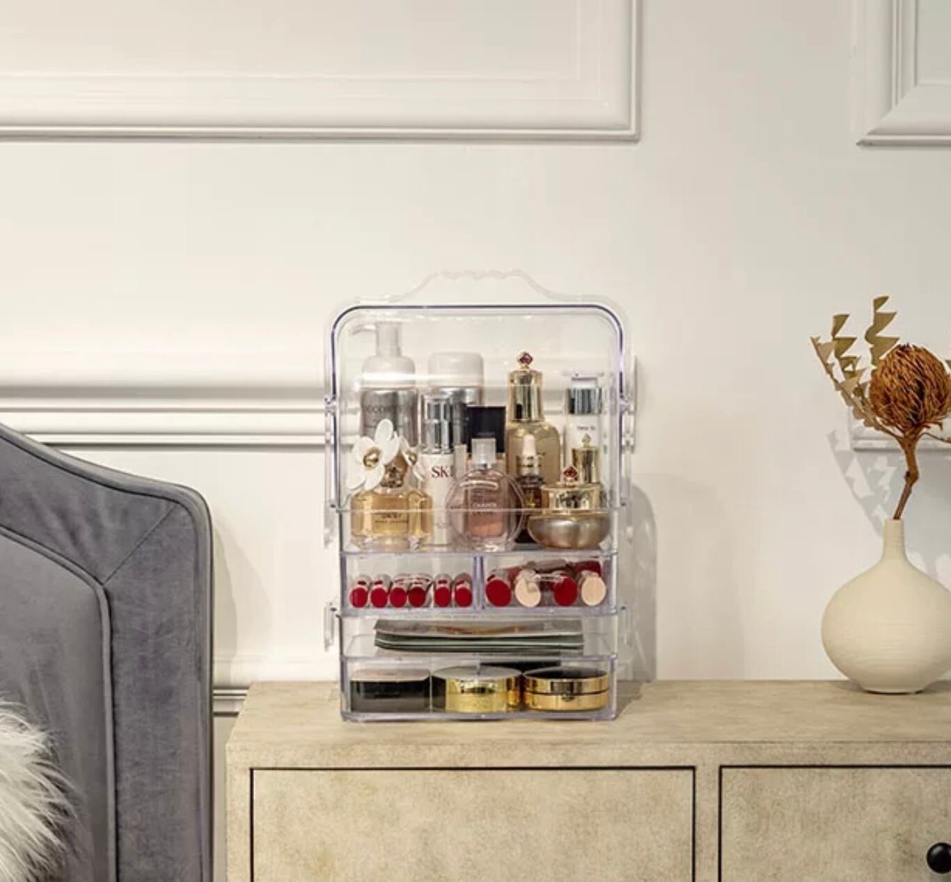 Makeup box Lサイズ クリア メイク ボックス コスメ アクセサリー ケース 化粧品 大容量収納 防塵 引き出し 美容 大容量 軽量 グリーン ホワイト イエロー