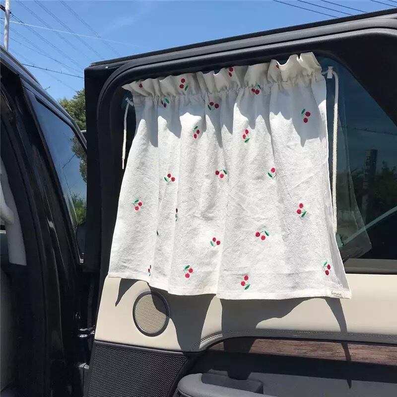 Window curtain 5柄 ブラインドカーテン サンシェード ドライブ用品 花 オリーブ チェリー くまちゃん柄 レース