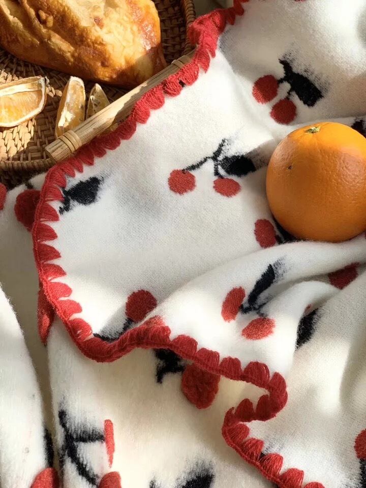 Cherry blanket S さくらんぼ柄ブランケット テーブルクロス カーテン キッチン ピクニック クロス レトロ ヴィンテージ