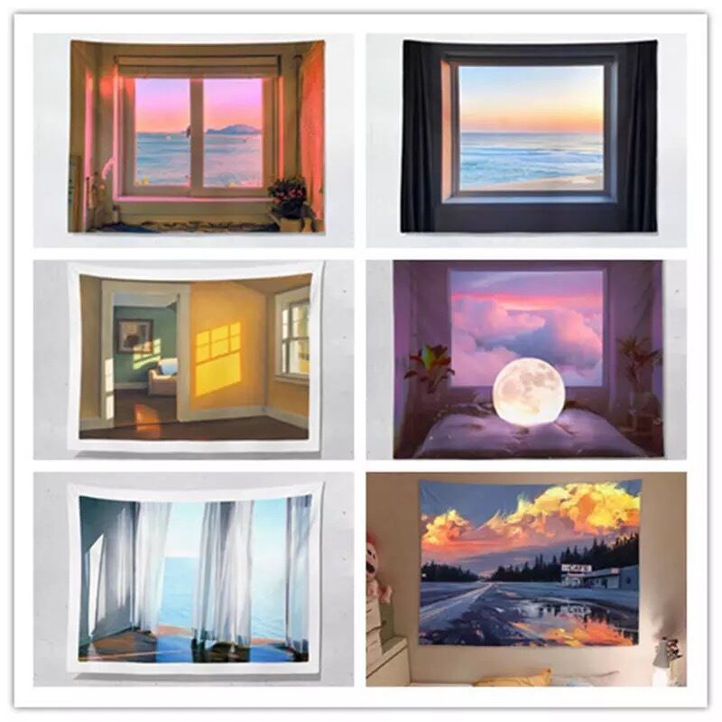Art tapestry L 15種 アートタペストリー 夕日 壁掛けインテリア 収納 ファッション雑誌 本 綿ロープ ボヘミアン