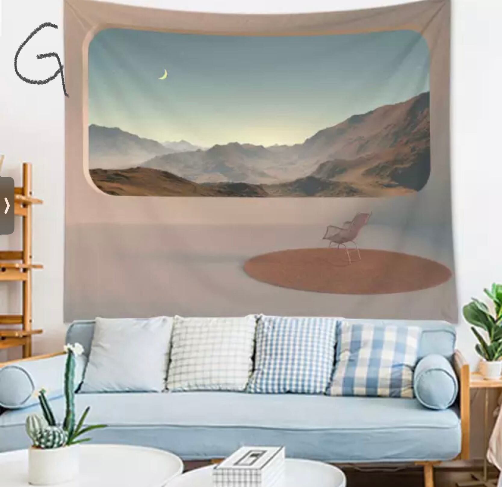 Art tapestry L 7種 アートタペストリー 夕日 壁掛けインテリア 収納 ファッション雑誌 本 綿ロープ ボヘミアン