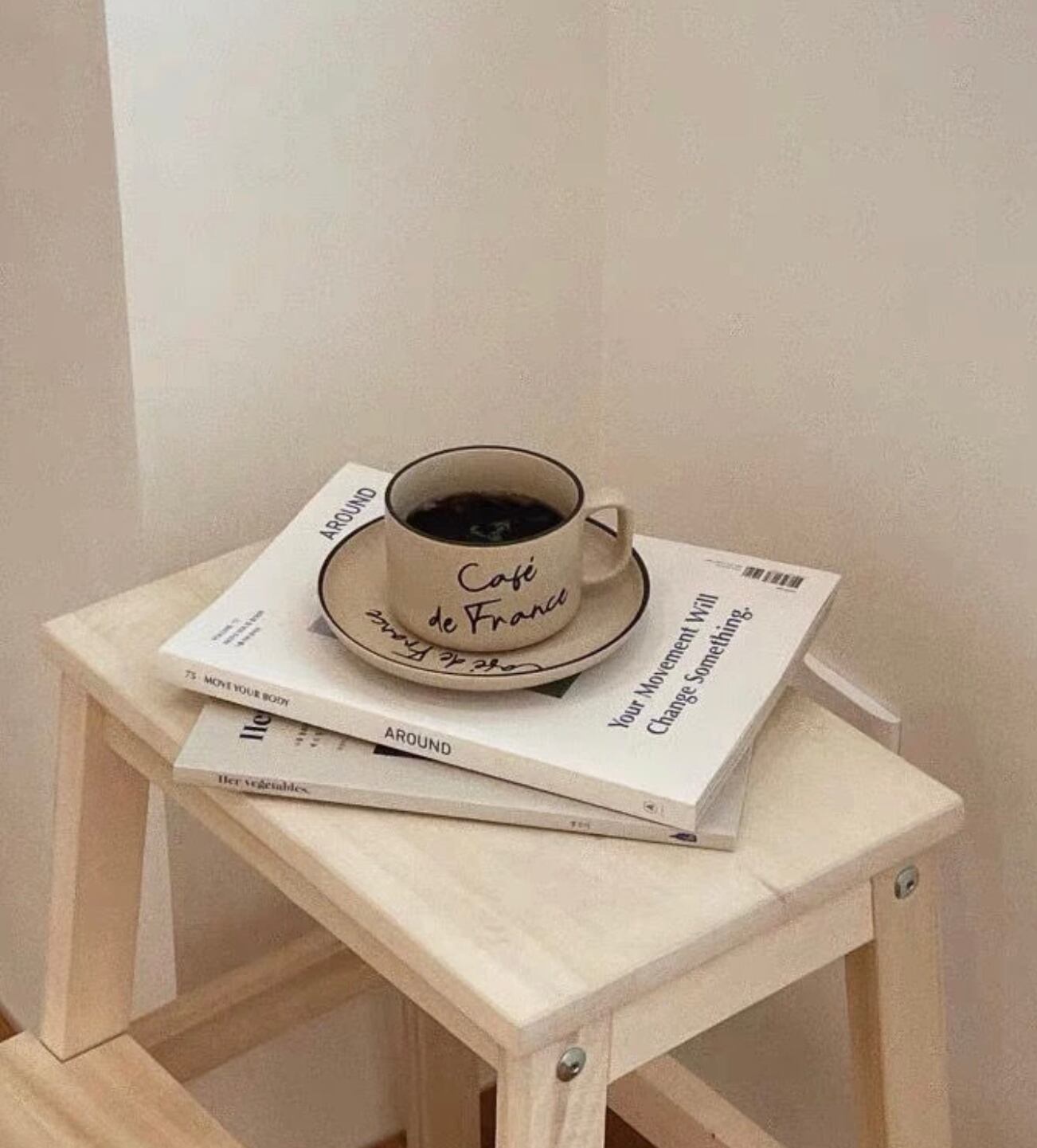 French mug&saucer フレンチ マグカップ&ソーサーセット セラミック レトロ コップ お皿 紅茶 ガラス おうちカフェ