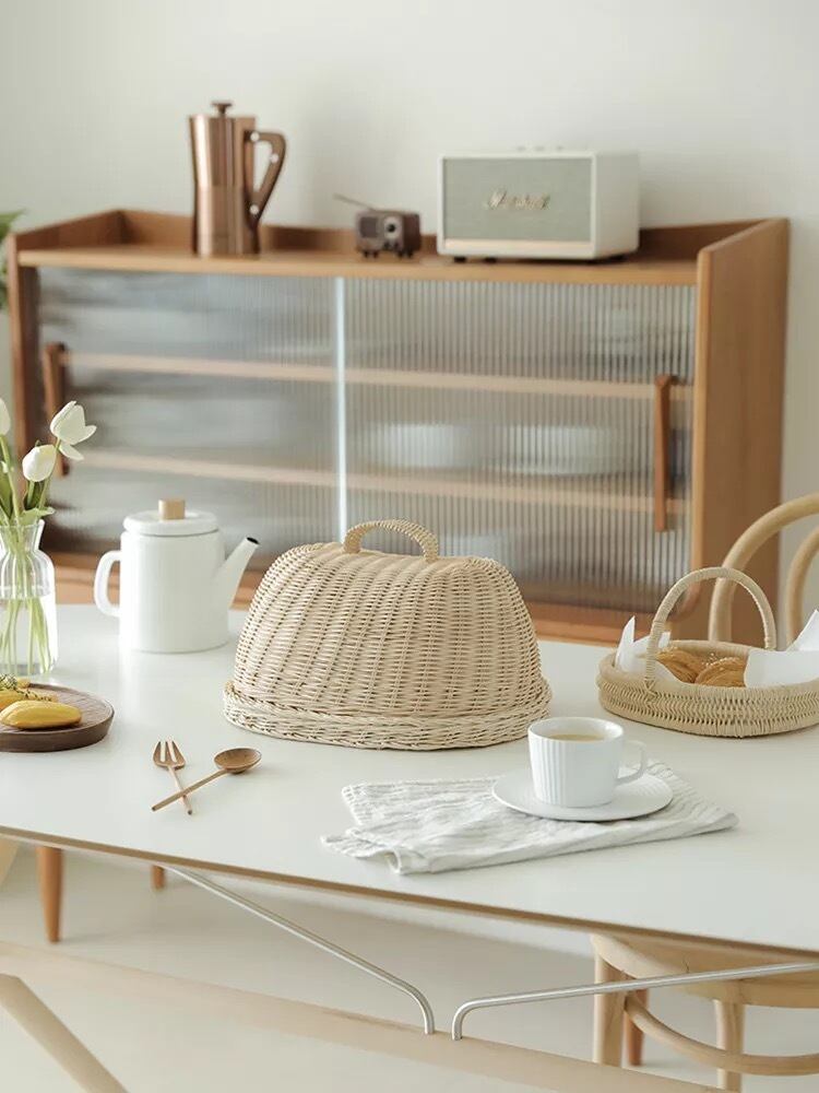 Rattan basket ラタン パン/フルーツバスケット キッチン収納 防塵 お出かけ ピクニック