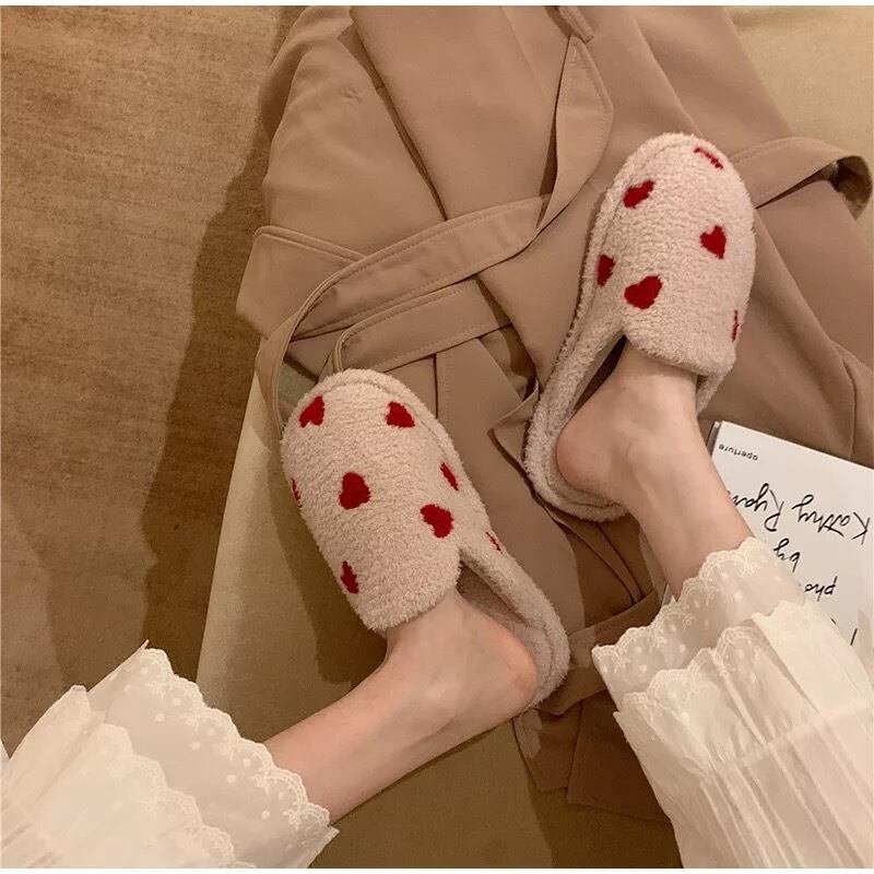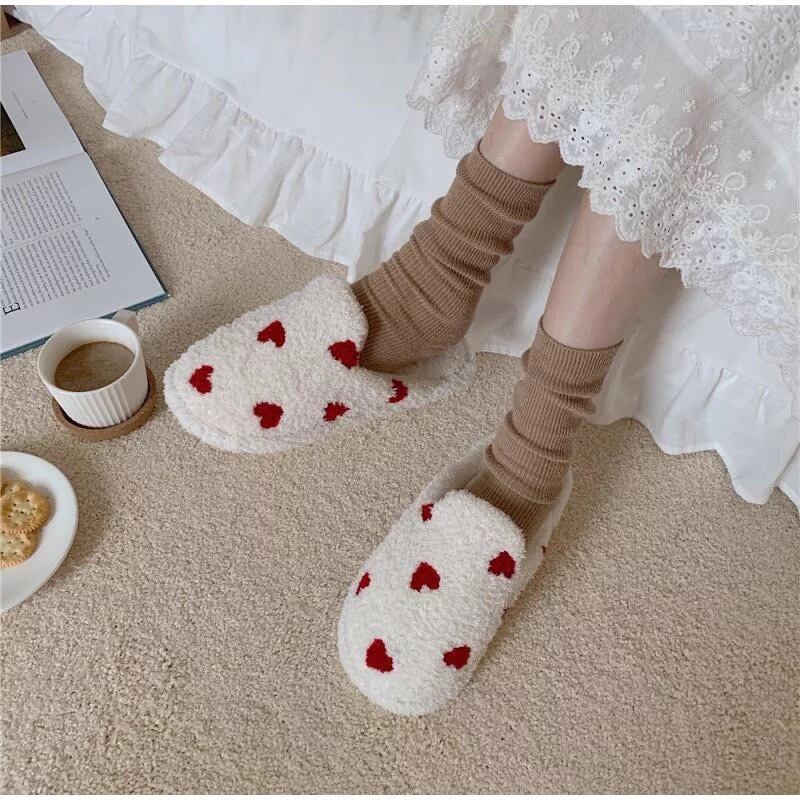 Heart slippers 2色 ハートスリッパ ふわふわ もこもこルームシューズ 23cm 24cm 25cm