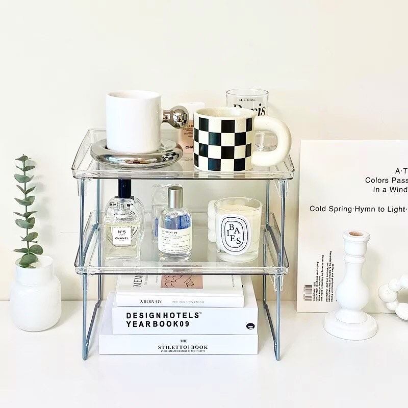 Clear shelf 折り畳み クリアディスプレイシェルフ 化粧品 コスメ収納 棚 ラック 軽量 キッチン リビング