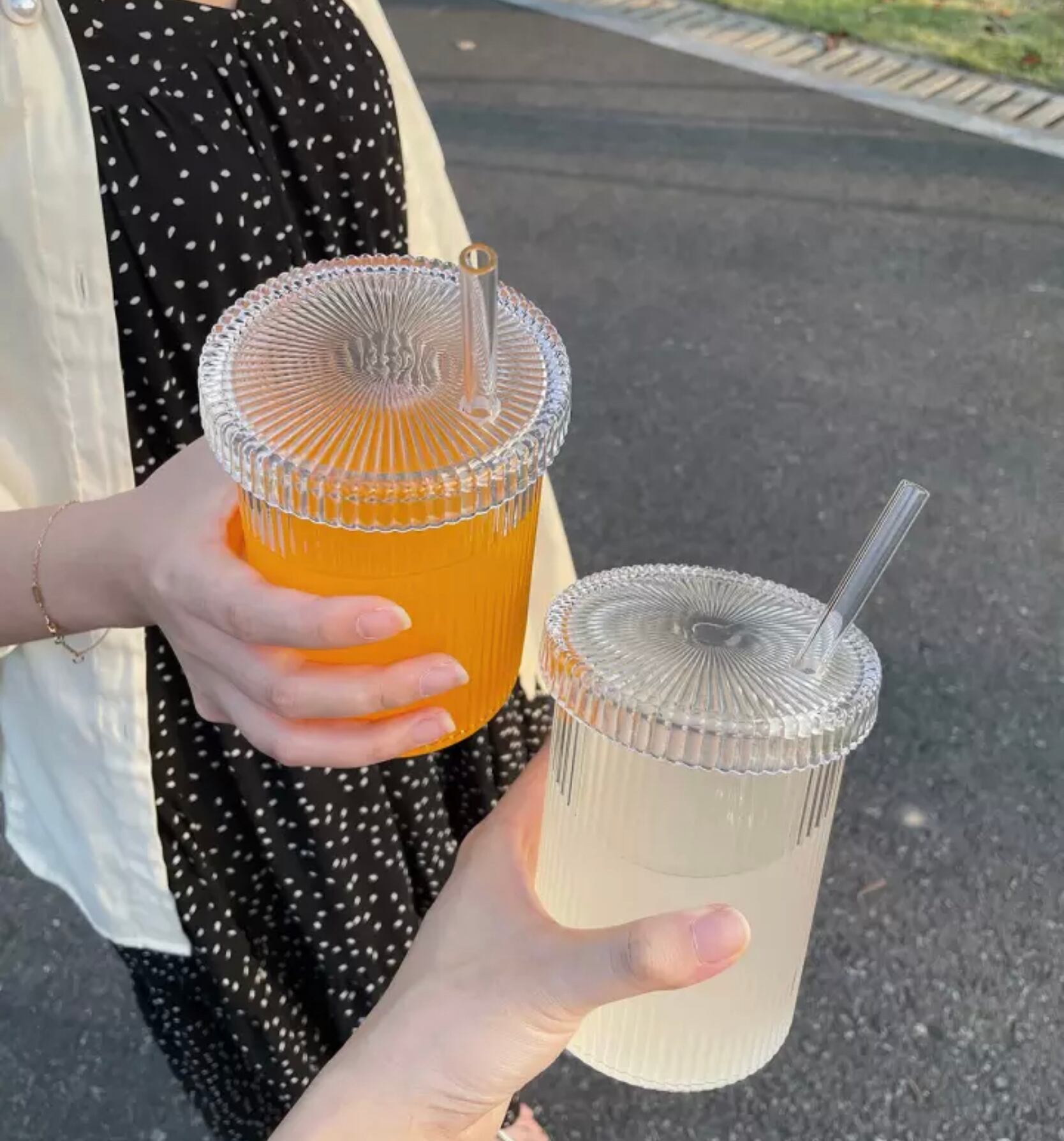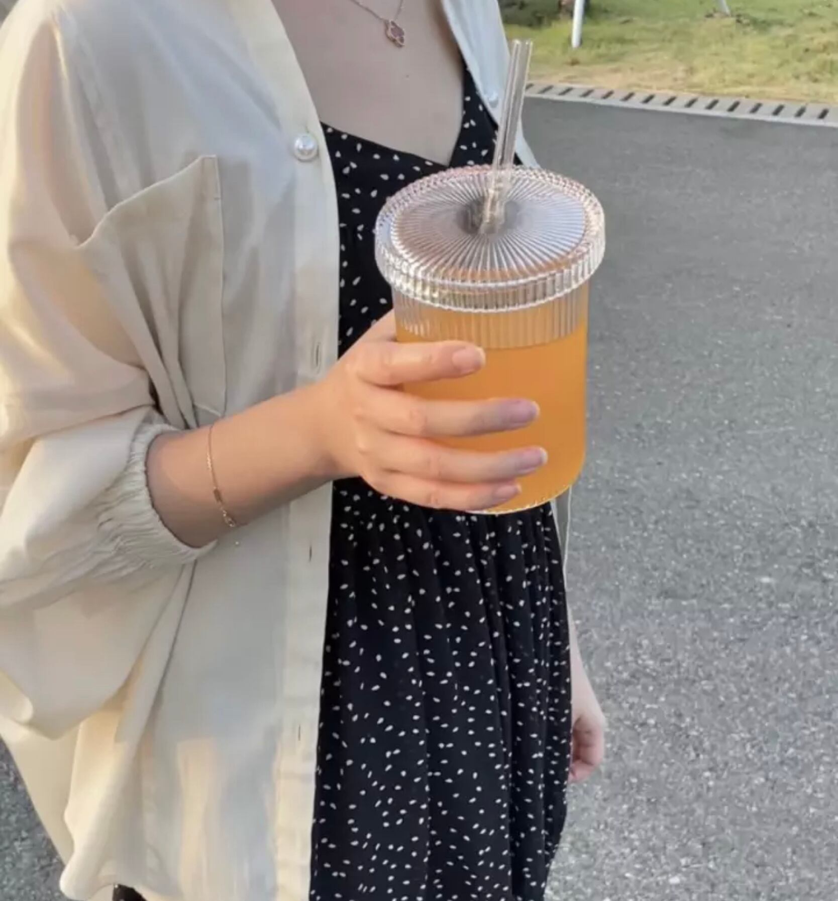 Glass bottle&straw set ガラスドリンクボトル&ストロー メイソンジャー 水筒 ウォーター タンブラー 水漏れ防止