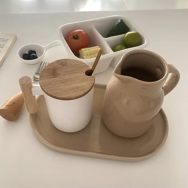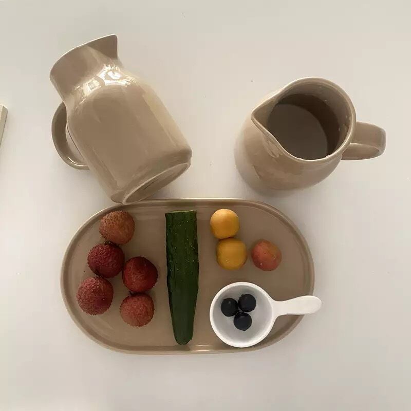 Ceramic pitcher セラミックピッチャー ポット 大容量ハンドル付き レトロ コップ お皿 紅茶 ガラス おうちカフェ