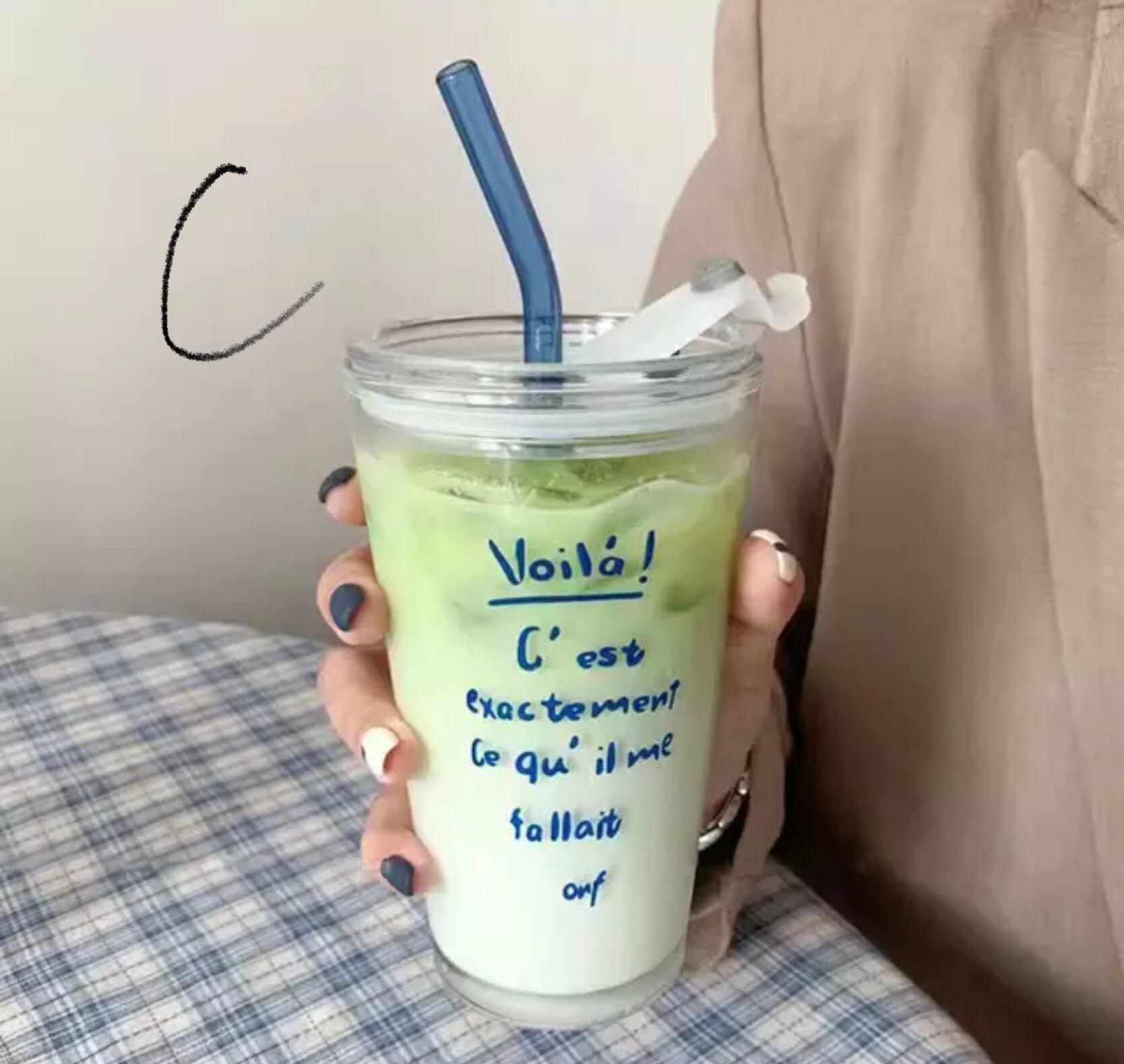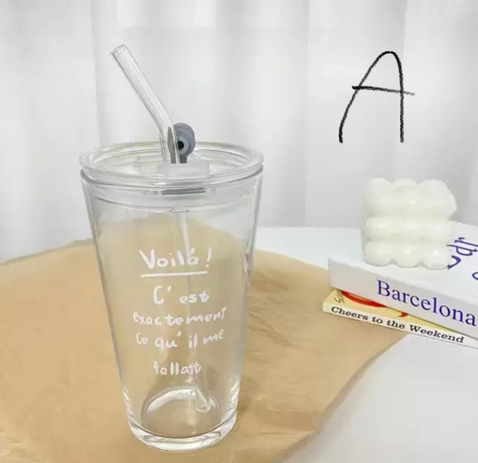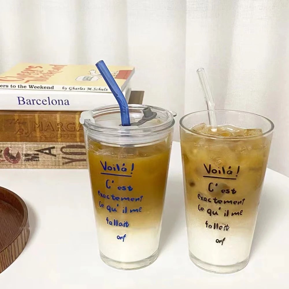 French glass cup 3色-ガラスストロー フレンチグラスカップ 蓋付き ガラス ドリンクコップ キッチン用品