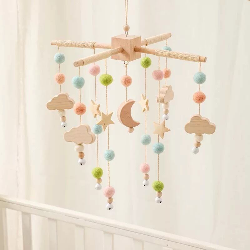Color mobile 3色 カラーベビーモビール 木製 ガラガラ レトロ スタンド インテリア