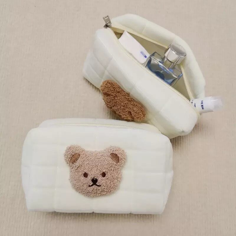 Bear pouch bag くまちゃんポーチ クリーム ベビー用品 コスメ収納 ビーチ トラベルバッグ 旅行 収納 鞄 雑貨