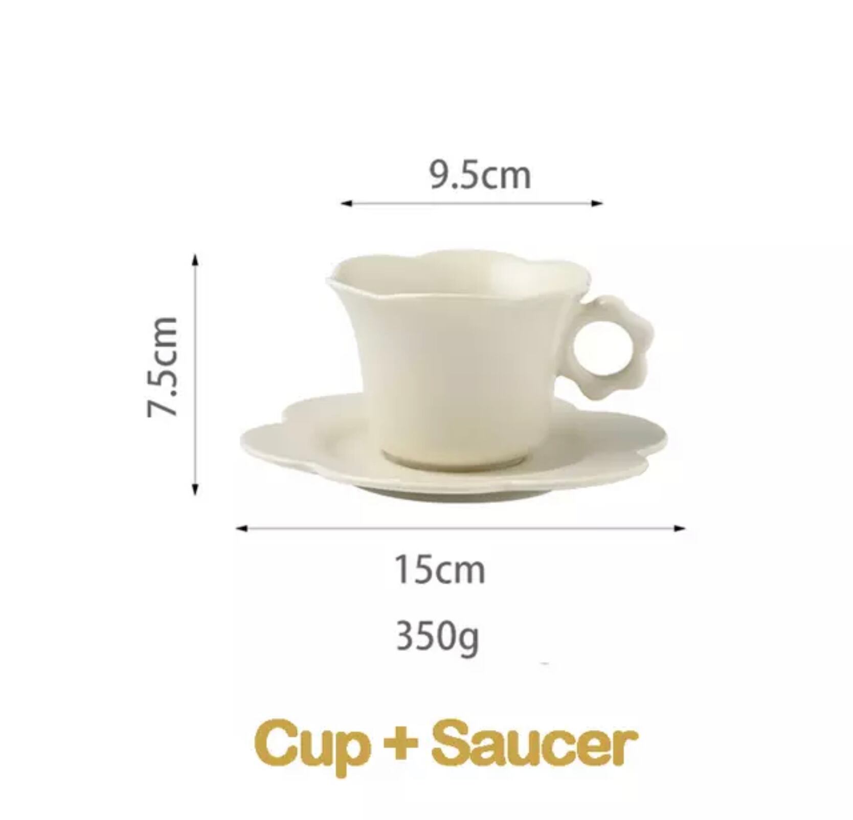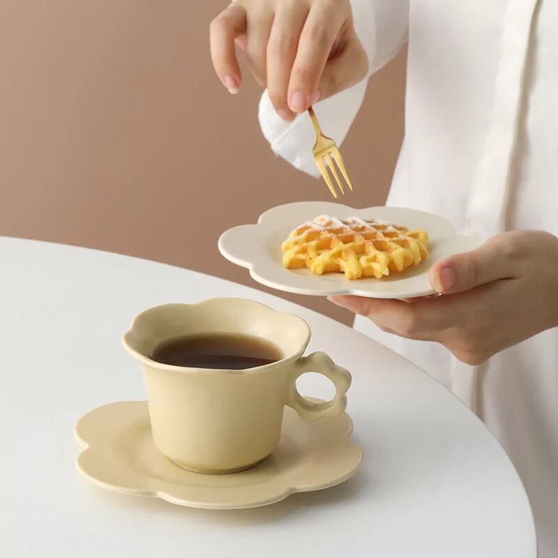 Flower mug&saucer set 2色 フラワーコーヒーマグカップ&ソーサーセット セラミック レトロ コップ お皿 紅茶 ガラス おうちカフェ