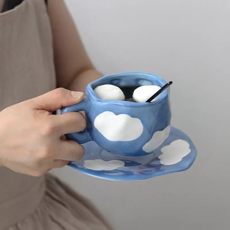 Cloud Mug&saucer set もくもく雲マグカップ&ソーサーセット ブルー セラミック レトロ コップ お皿 紅茶 ガラス おうちカフェ