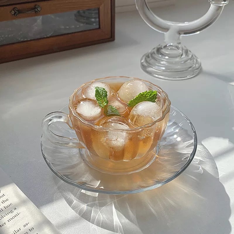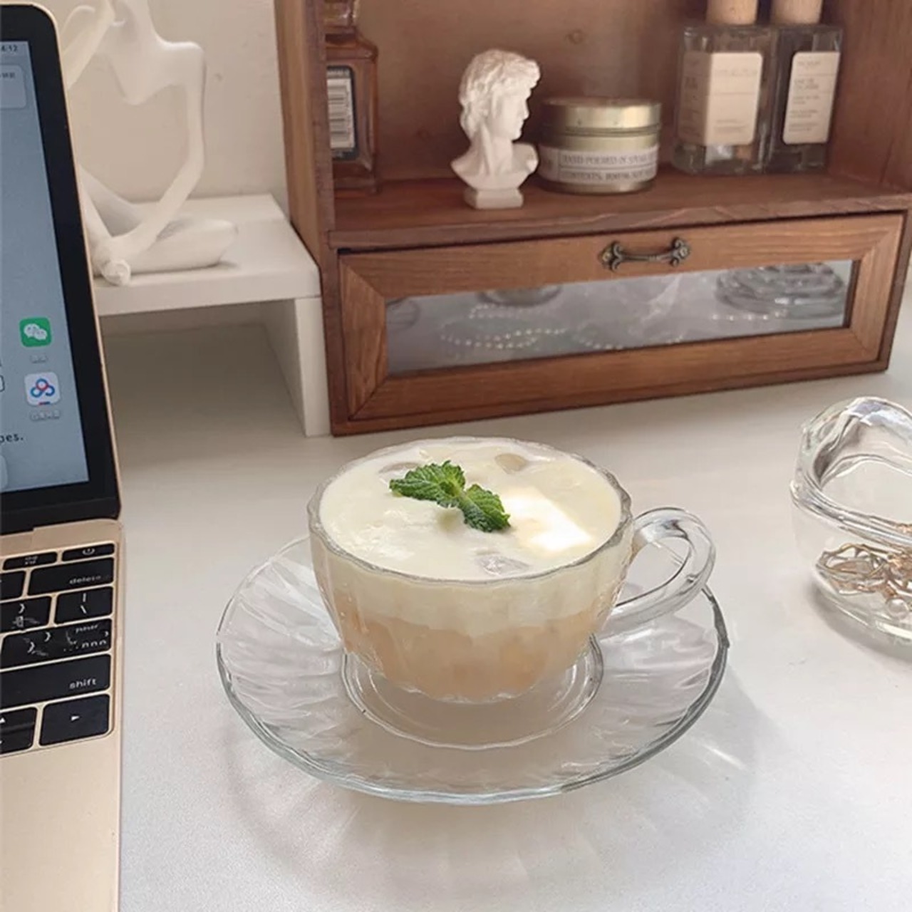Wave glass set ウェーブクリアグラス&ソーサーセット 透明 クリアコップ コーヒー 紅茶 ガラス おうちカフェ