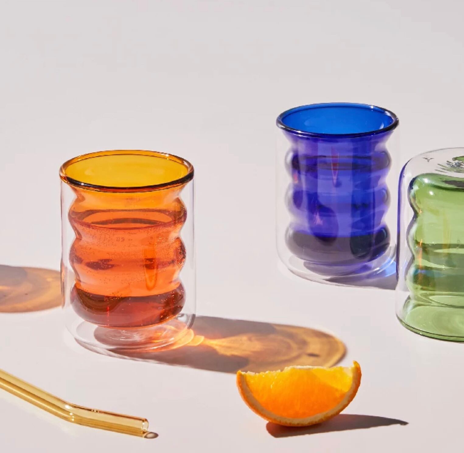 Double wall glass 3色 カラーダブルウォール クリスタルグラス コップ インテリア 韓国 おうちカフェ