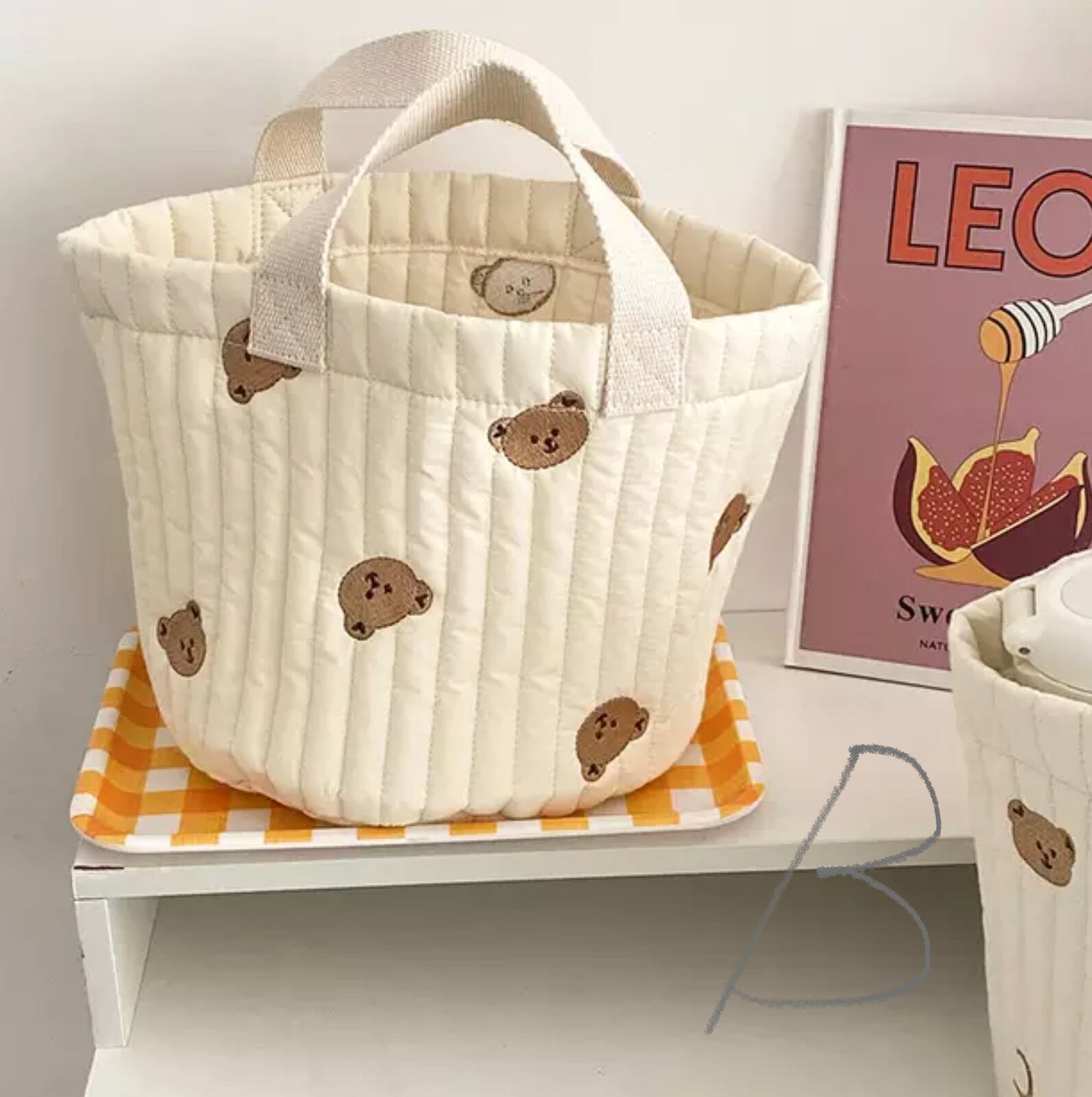 Bear bag 2種 くまちゃん刺繍エコハンドバッグ お弁当入れ 手提げ鞄 カバン アート デザイン キッチン ファッション小物