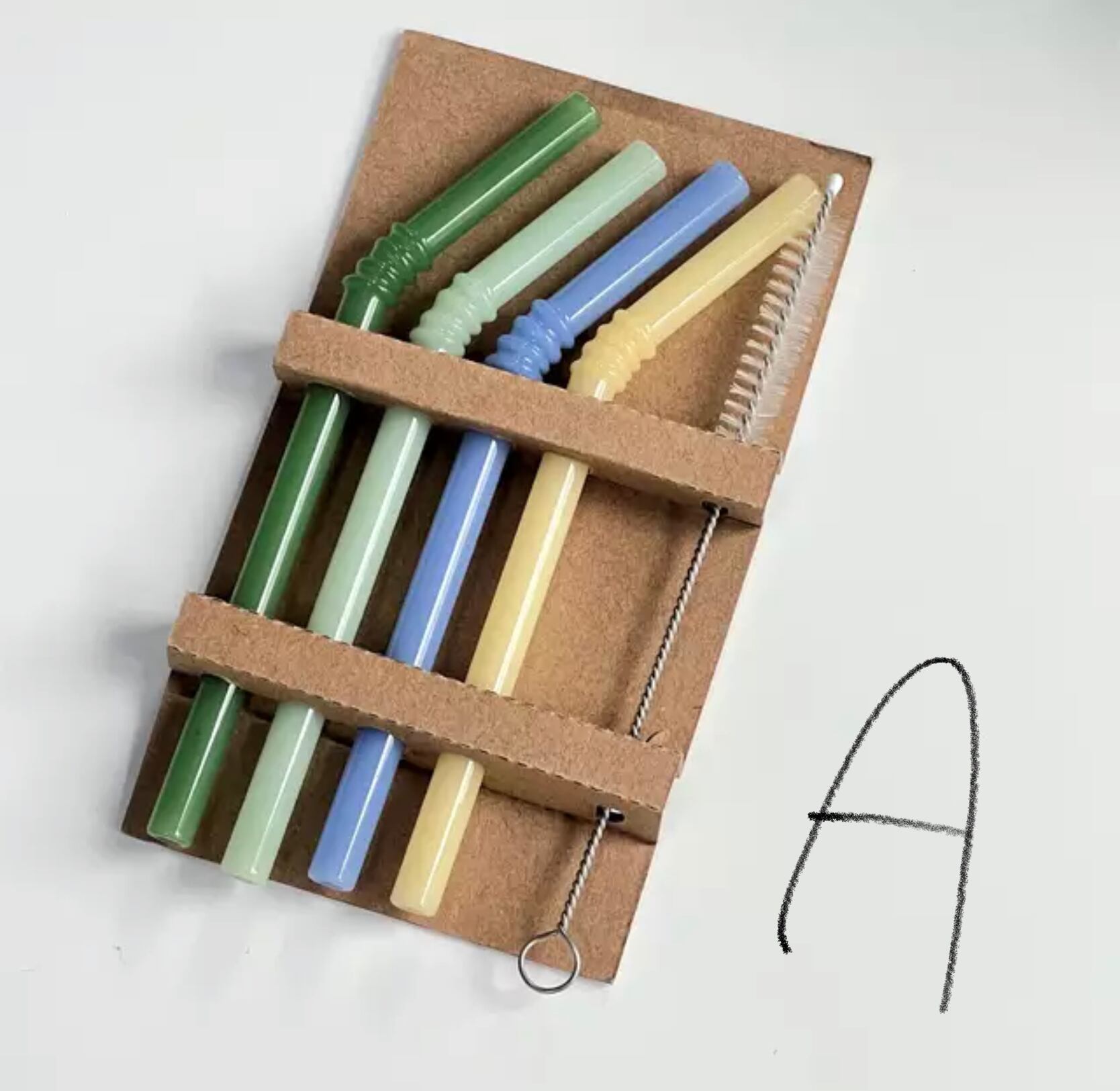 Mini glass straw4P+brush 4種 ガラスストロー4本+ブラシセット カトラリー 北欧デザイン キッチン アクセサリー