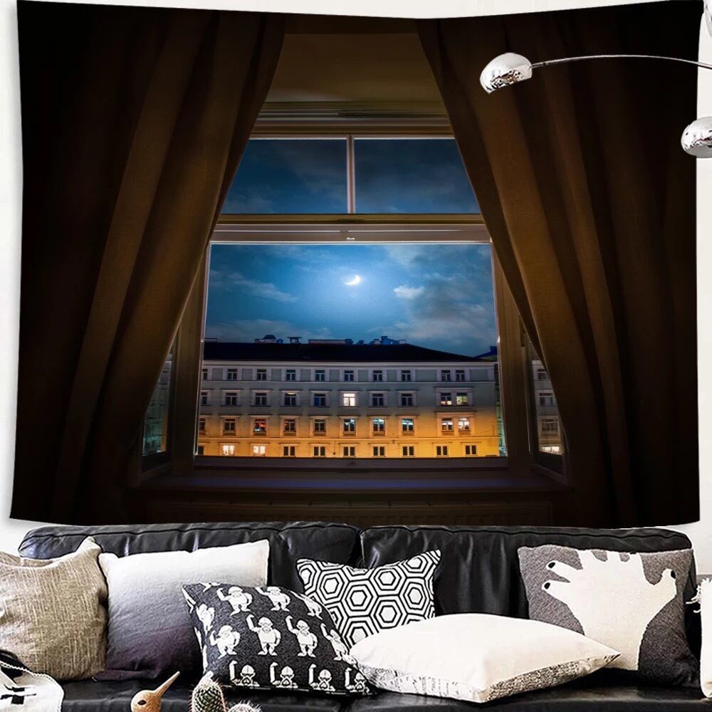 Art tapestry-S 7種 ウインドウアートタペストリー 壁掛けカーテンインテリア 収納 ファッション雑誌 本 綿ロープ ボヘミアン