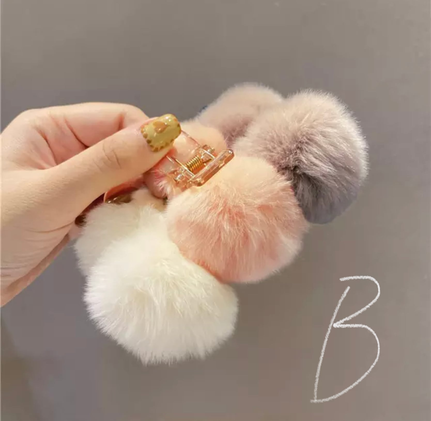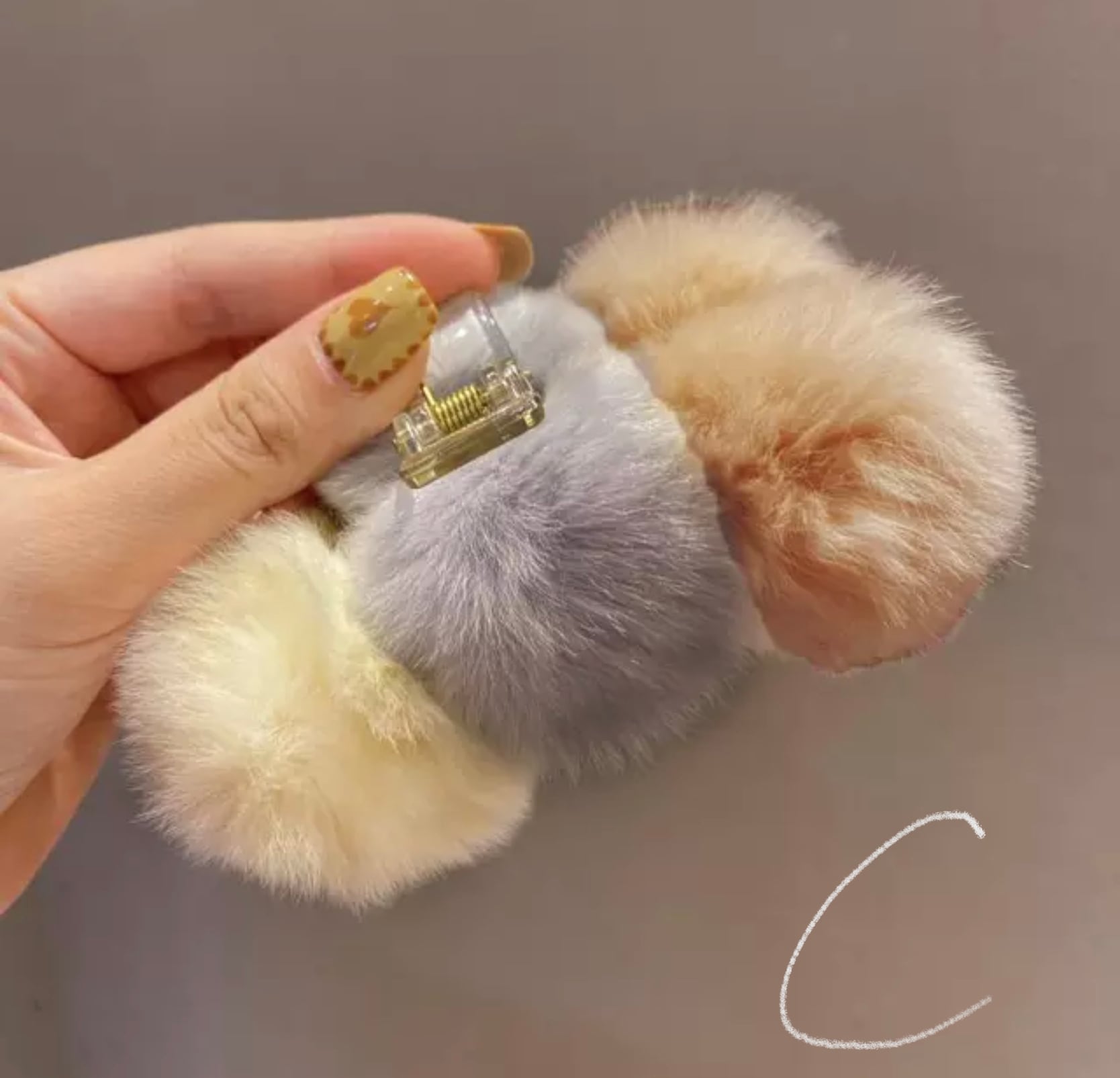Fluffy hair clip 4種 もこもこヘアクリップ 髪留め アクセサリー レディース 韓国デザイン エレガント クリスタル ファッション
