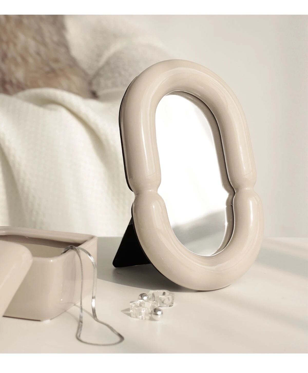Ellipse mirror 3色 楕円ミラー ホワイト ブラウン クリーム 不規則デザインミラー韓国 輸入雑貨 メイクミラー 送料無料