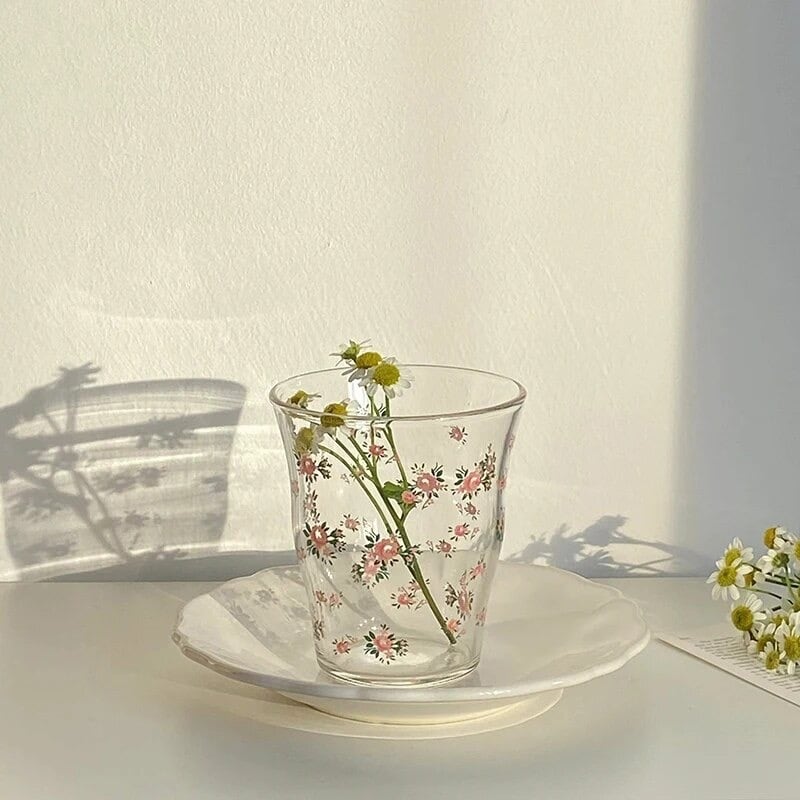 Flower glass フラワーグラス(ピンク) ドリンクコップ ボトル ウォーター 水筒 キッチン用品